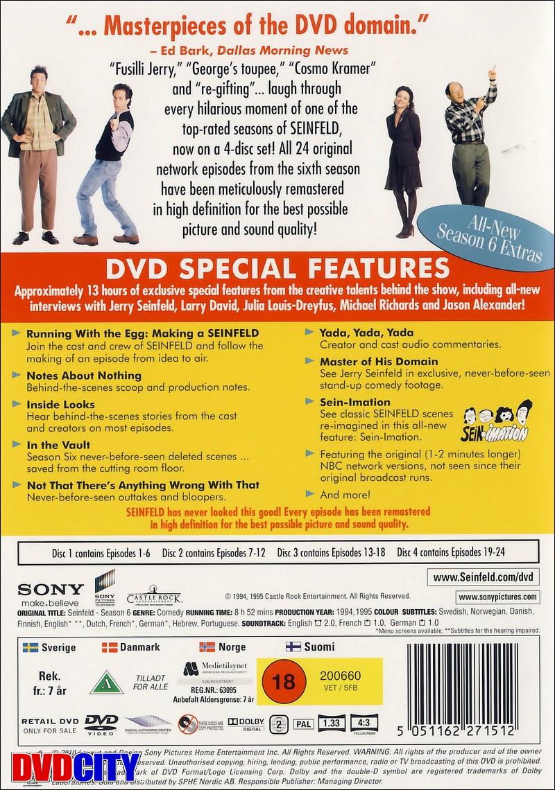 Seinfeld - Season 6 (Box Set) (4 Disk)DVD (Import)Med dansk tekst  49,95 kr