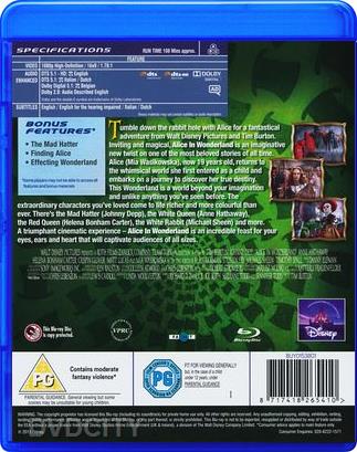 | Beskrivelse: [ Dansk Engelsk ] Den 19-årige Alice (Mia Wasikowska) dumper ned i det mærkelige Eventyrland, et sted hun allerede besøgte som barn. I en verden, der ikke ligner noget andet, begiver Alice sig ud på en fantastisk rejse for at finde sin sande skæbne, og bringe den ondskabsfulde Røde Dronnings tyranni til ende. I rollerne som de spøjse figurer i Eventyrland ses Johnny Depp (Den Gale Hattemager), Anne Hathaway (Den Hvide Dronning), Helena Bonham Carter (Den Røde Dronning), Michael Sheen (Hr. Kanin) og mange flere. Beskrivelse: [ Dansk Engelsk ] Tim Burton and Disney join forces for this 3D fantasy adventure based on the characters from the Lewis Carroll classics 'Alice's Adventures in Wonderland' and 'Through the Looking Glass'. Mia Wasikowska stars as the nineteen-year-old Alice, who returns to the magical world of her childhood adventure to reunite with her friends the Mad Hatter (Johnny Depp), the White Rabbit (Michael Sheen), Tweedledum and Tweedledee (both played by Matt Lucas), the Dormouse (Barbara Windsor), the Caterpillar (Alan Rickman) and the Cheshire Cat (Stephen Fry). Alice discovers her true destiny as she joins forces with the colourful denizens of Wonderland to overthrow the wicked Red Queen (Helena Bonham Carter). |