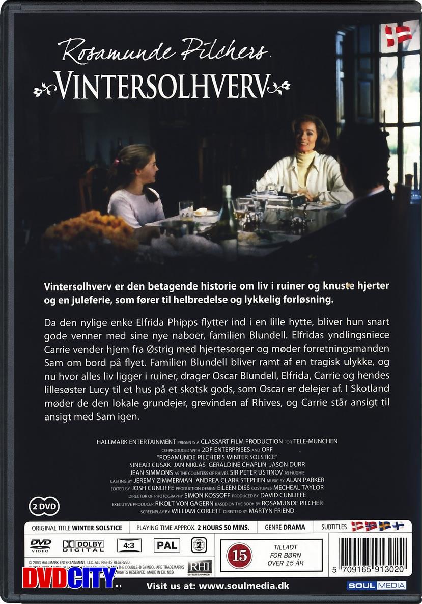 | Beskrivelse: [ Dansk Engelsk ] Da den nylige enke Elfrida Phipps flytter ind i en lille hytte, bliver hun snart gode venner med sin nye naboer, familien Blundell. Elfridas yndlingsniece Carrie vender hjem fra Østrig med hjertesorger og møder forretningsmanden Sam om bord på flyet. Familien Blundell bliver ramt af en tragisk ulykke og nu hvor alles liv ligger i ruiner, drager Oscar Blundell, Elfrida, Carrie og hendes lillesøster Lucy til et hus på et skotsk gods, som Oscar er delejer af. I Skotland møder de den lokale grundejer, Grevinde af Rhives, og Carrie står ansigt til ansigt med Sam igen. Beskrivelse: [ Dansk Engelsk ] Winter Solstice is the entrancing story of shattered lives and broken hearts and a Christmas retreat which brings healing and happy endings.