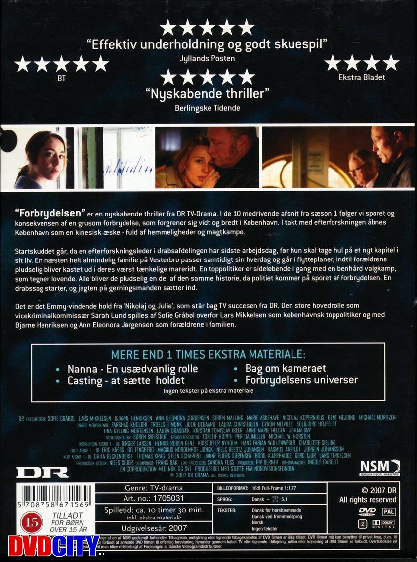 Startskuddet går, da en efterforskningsleder i drabsafdelingen har sidste arbejdsdag, før hun skal tage hul på et nyt kapitel i sit liv. En næsten helt almindelig familie på Vesterbro passer samtidig sin hverdag og går i flytteplaner, indtil forældrene pludselig bliver kastet ud i deres værst tænkelige mareridt. En toppolitiker er sideløbende i gang med en benhård valgkamp, som tegner lovende. Alle bliver de pludselig en del af den samme historie, da politiet kommer på sporet af forbrydelsen. En drabssag starter, og jagten på gerningsmanden sætter ind. I løbet af 20 intense dage i november ændres deres liv for bestandigt. Forbrydelsen og jagten på gerningsmanden gør vidt forskellige mennesker til en del af den samme skæbnesvangre historie. Efterhånden som efterforskningen udvikler sig, breder konsekvenserne sig og inddrager mennesker fra vidt forskellige miljøer - fra gymnasieelevernes verden af skjulte dagsordener, over indvandrergruppers lukkede miljøer og embedsmandsvældet på rådhuset, til de mange mere eller mindre synligt involverede i en benhård valgkamp. | Ekstra features: