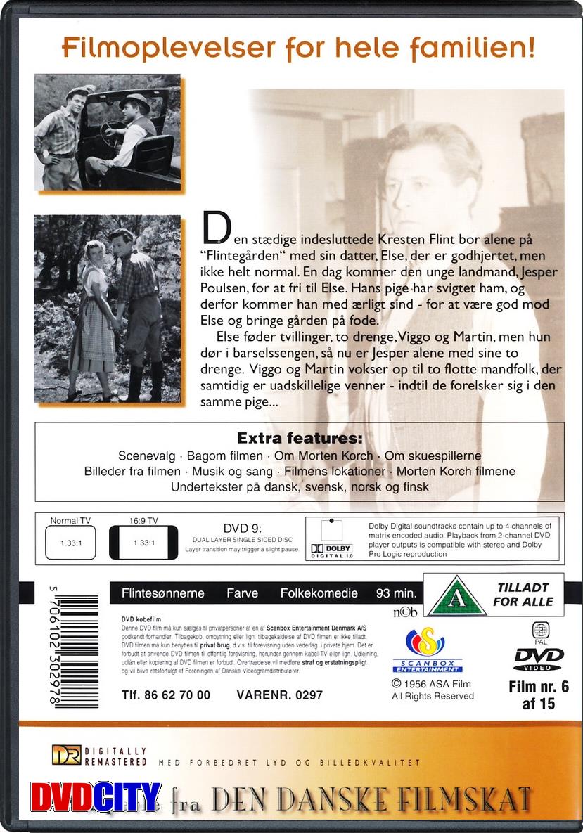 Den stædige indesluttede Kresten Flint bor alene på Flintegården med sin datter Else, der er godhjertet men ikke helt normal. En dag kommer den unge landmand Jesper Poulsen for at fri til Else. Hans pige har svigtet ham og derfor kommer han med ærligt sind for at være god mod Else og bringe gården på fode. Det bliver en svær tid for Jesper. Kresten holder ham udenfor alt og Elses syge sind gør livet uudholdeligt, så hun søger trøst hos den gæve husmand Mikkel. Else føder tvillinger, to drenge Viggo og Martin men hun dør i barselsengen, så nu er Jesper alene med sine to drenge. Viggo og Martin vokser op til to flotte mandfolk der samtidig er uadskillelige venner indtil de forelsker sig i samme pige. Mikkels barnebarn, den kønne Karen og nu må Jesper bruge al sin klogskab og tage affære. | Ekstra features: